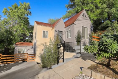 Fresh paint and solid wood interior doors throughout the home complement the charming wood moldings and trim. The high ceilings with exposed beams in the living areas create a sense of openness and sophistication. This home features four generously sized bedrooms, including a master bedroom with his-and-hers closets and a built-in vanity.